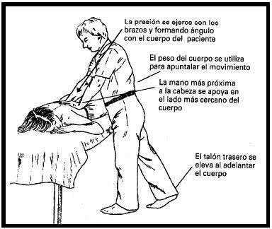 El fisioterapeuta deberá mantenerse erguido con la espalda recta para distribuir las cargas que actúan sobre su espalda de manera vertical y de esta manera evitar trastornos de postura y contracturas musculares.