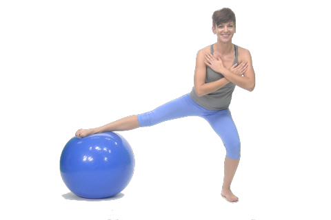 Los músculos glúteos medio y menor, son unos importantes elementos funcionales y durante la marcha. Mediante este ejercicio de tonificación podemos ayudar a la rehabilitación y recuperación de la marcha correcta y la estabilización de la articulación de la cadera cuando sea necesario. El ejercicio se realiza apoyado lateralmente sobre la pelota, y realizando una separación de la pierna, elevándola del suelo.