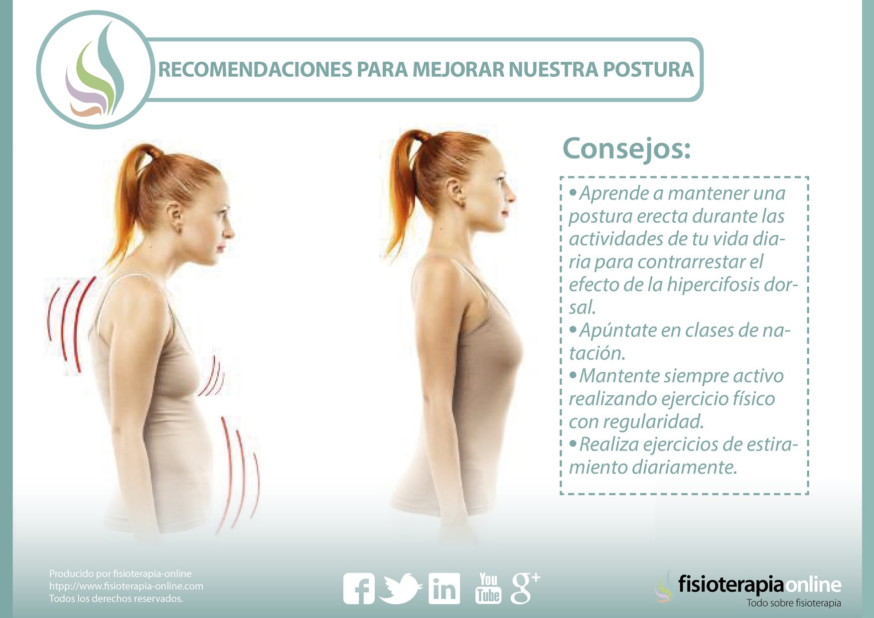 En la siguiente infografía encontrarás mayor información sobre la postura, específicamente de postura corporal y ejercicios, que se ha convertido en una de las herramientas favoritas de fisioterapeutas calificados y pacientes de todas las edades: